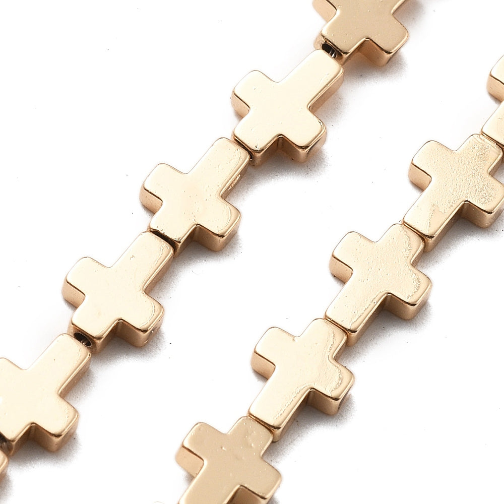 Αιματίτης σταυρός απαλό χρυσό 8mm