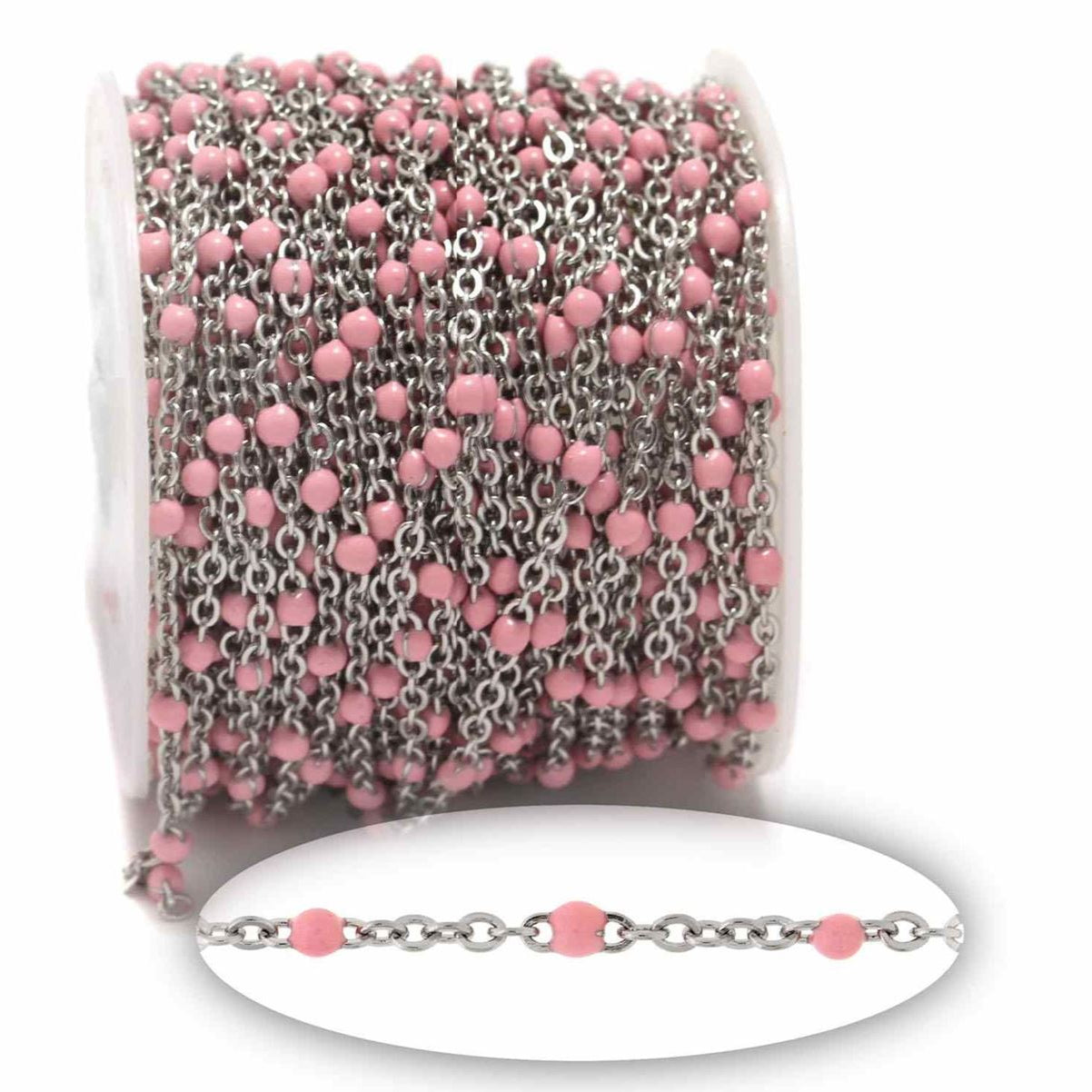 Ασημί ατσάλινο ροζάριο με σμάλτο για να φτιάξεις την δικιά σου αλυσίδα λαιμού, χεριού, γυαλιών ή και ποδιού.
