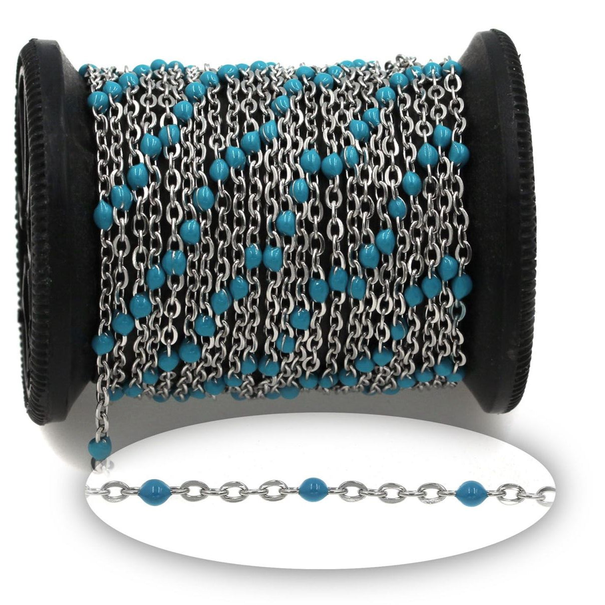 Ασημί ατσάλινο ροζάριο με σμάλτο για να φτιάξεις την δικιά σου αλυσίδα λαιμού, χεριού, γυαλιών ή και ποδιού.