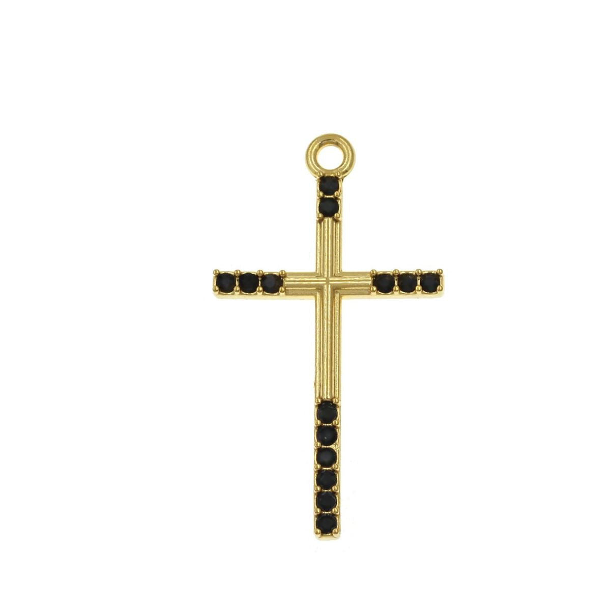 Ατσάλινος χρυσός σταυρός με μαύρες πέτρες