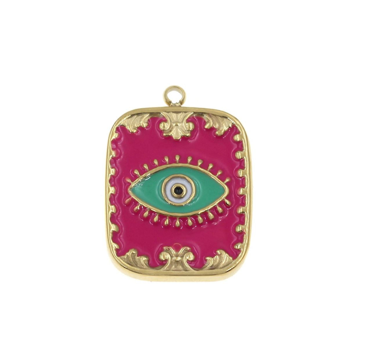 Ατσάλινο μενταγιόν φούξια πλάκα μάτι