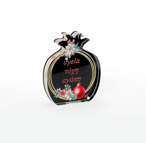 Επιτραπέζιο γούρι πλέξιγκλας ρόδι με ευχές 10cm