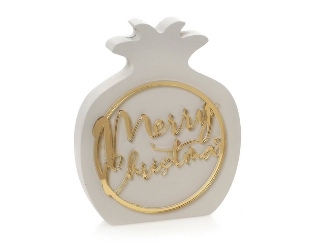 Επιτραπέζιο γούρι ρόδι λευκό με ευχή ¨Merry Christmas" σε χρυσό πλέξιγκλας, ιδανικό για δώρο ή για να διακοσμήσετε τον χώρο σας