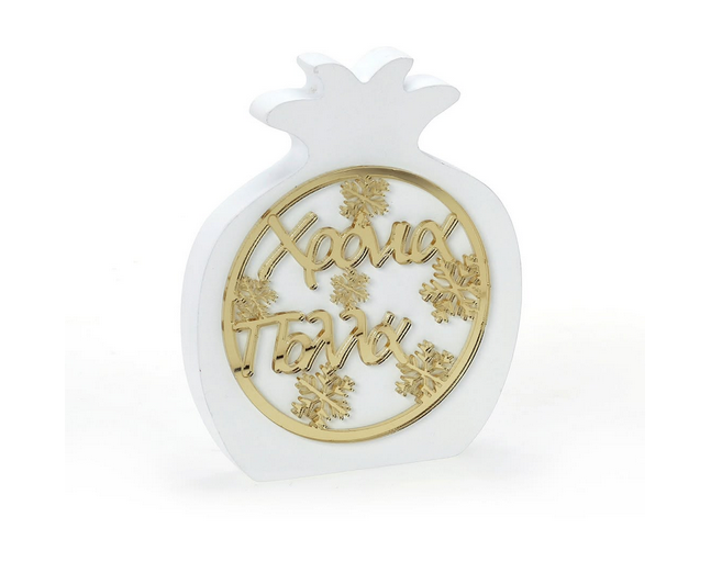 Επιτραπέζιο γούρι ρόδι λευκό με ευχή ¨Χρόνια Πολλά" σε χρυσό πλέξιγκλας, ιδανικό για δώρο ή για να διακοσμήσετε τον χώρο σας