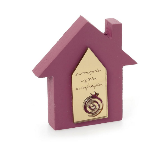 Επιτραπέζιο γούρι σπιτάκι σε γκρι χρώμα και στοιχείο πλέξιγκλας με χαραγμένες ευχές, ιδανικό για δώρο ή για να διακοσμήσετε τον χώρο σας