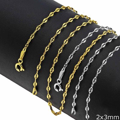 Επιχρυσωμένη αλυσίδα ασημένια 925° Χείλη1mm, με περίμετρο 45 εκατοστά.