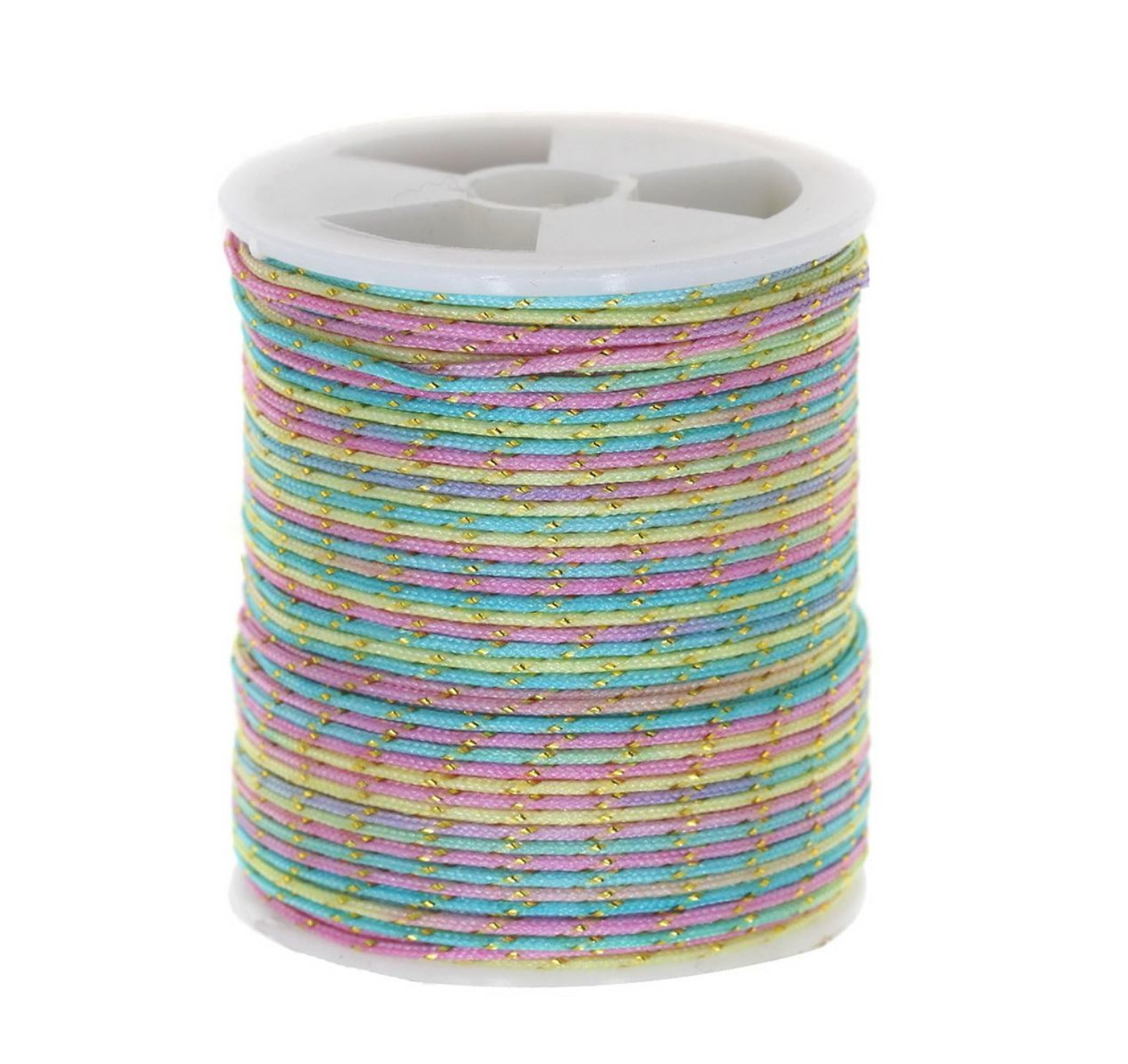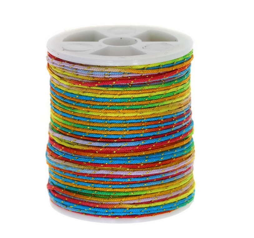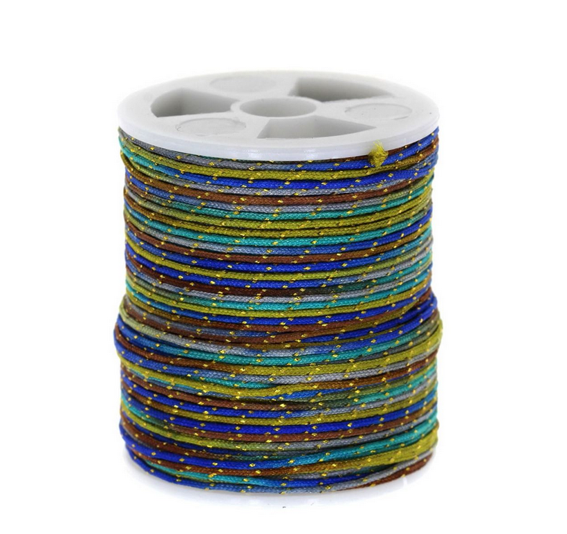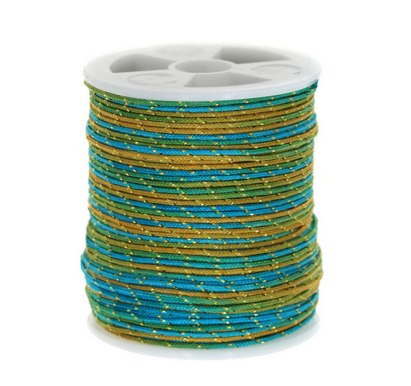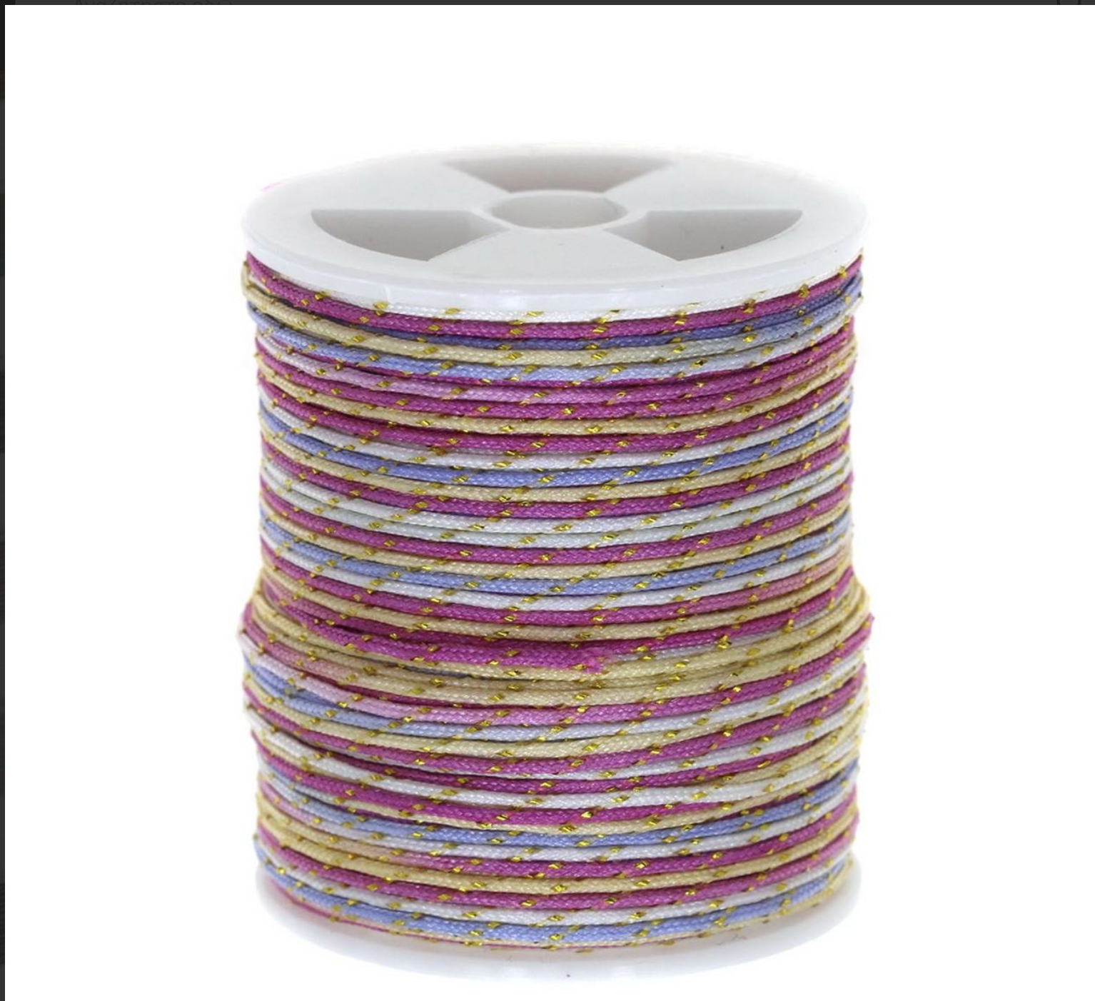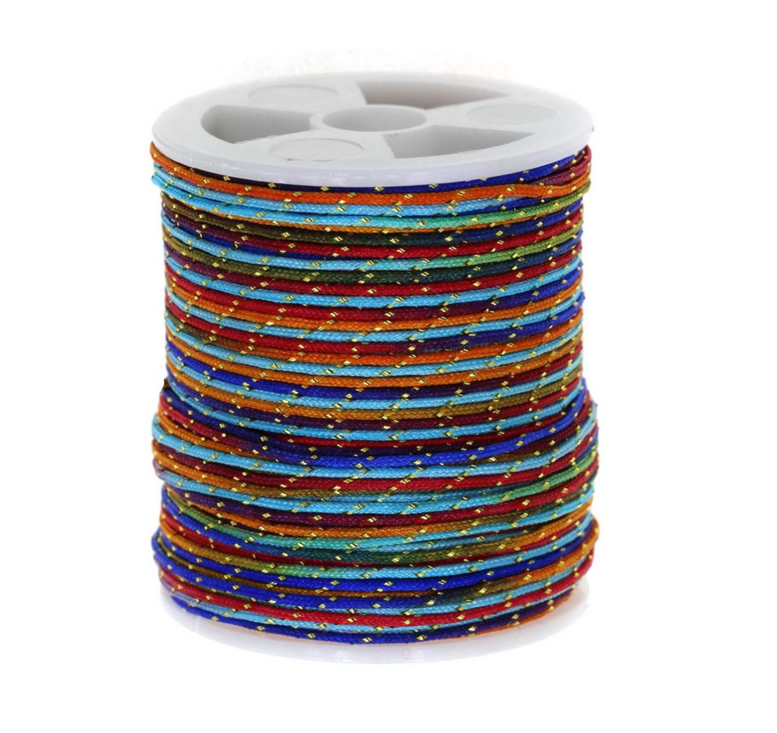 Συνθετικό πολύχρωμο κορδόνι πάχους 0,8μμ ιδανικό για μακραμέ και χειροποίητα κοσμήματα. Καίγεται στην άκρη και έχει πλεγμένη χρυσοκλωστή. Η τιμή αναφέρεται σε μικρό καρουλάκι 15 μέτρων