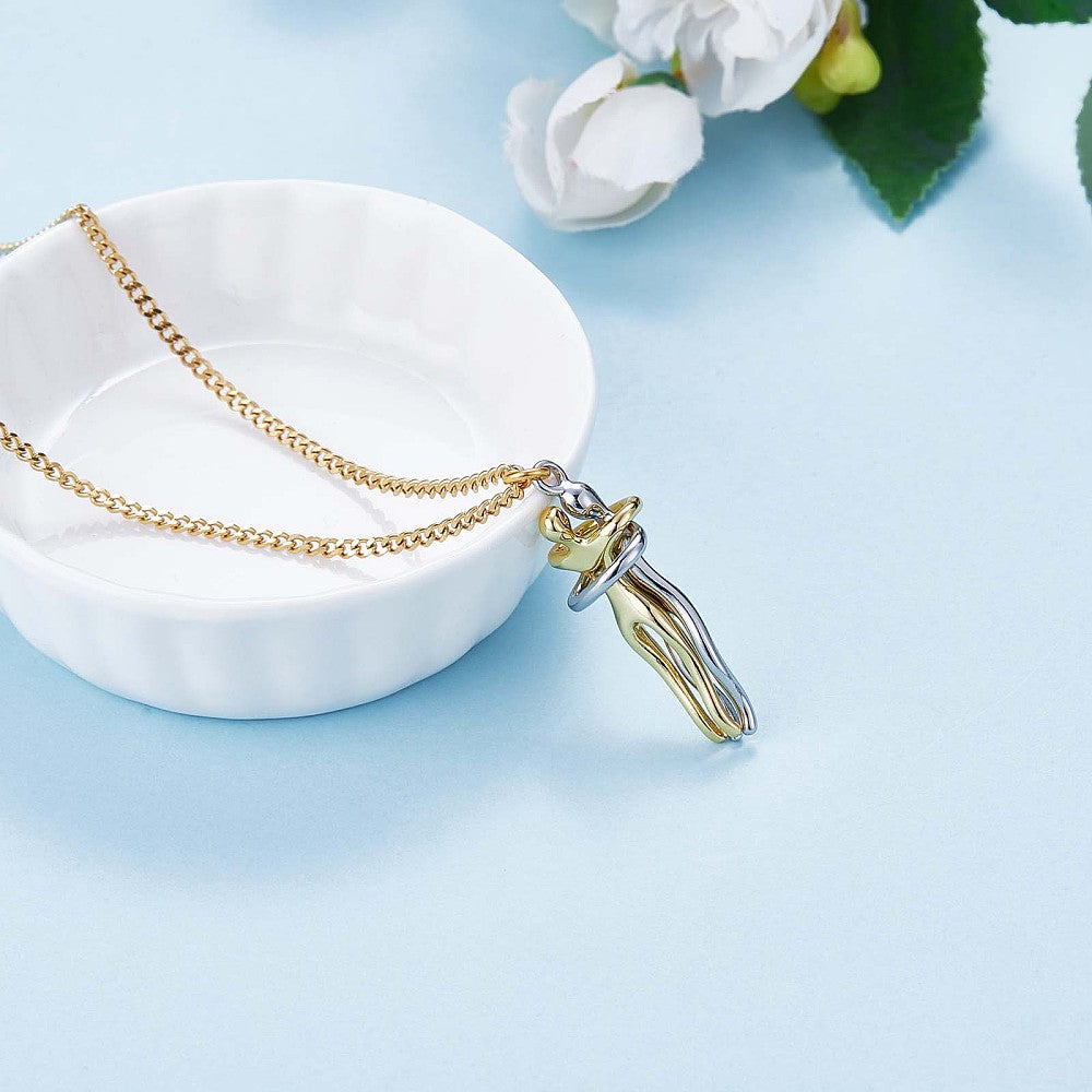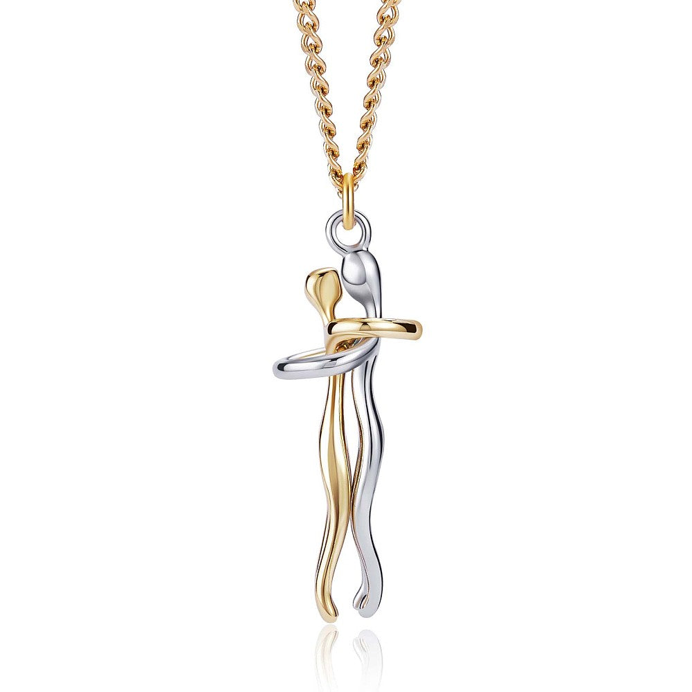 Ατσάλινο κολιέ με αγκαλιασμένο ζευγάρι, με περίμετρο αλυσίδας 45 εκατοστά