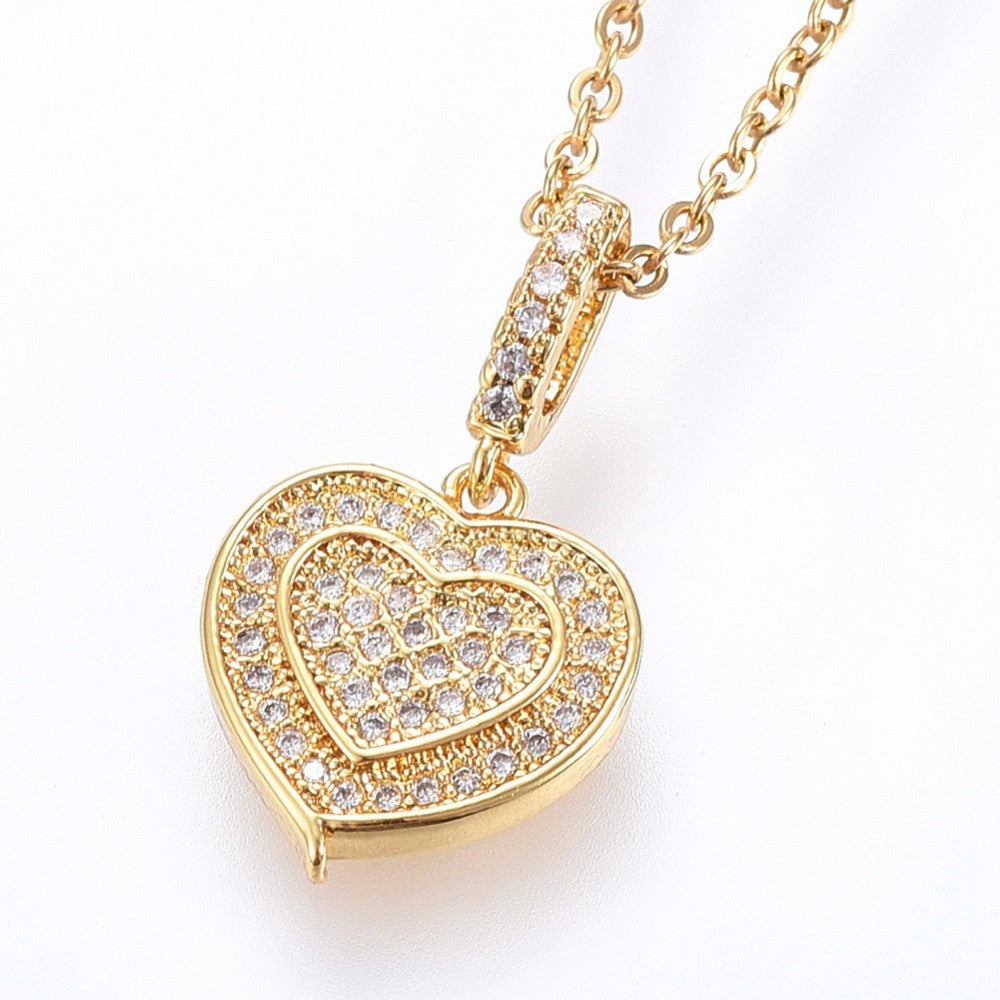 Ατσάλινο κολιέ με καρδιά με ζιργκόν, με περίμετρο αλυσίδας 41 εκατοστά με 6 εκατοστά επέκταση αλυσίδας ώστε να το προσαρμόζετε όσο κοντό ή μακρύ επιθυμείτε.