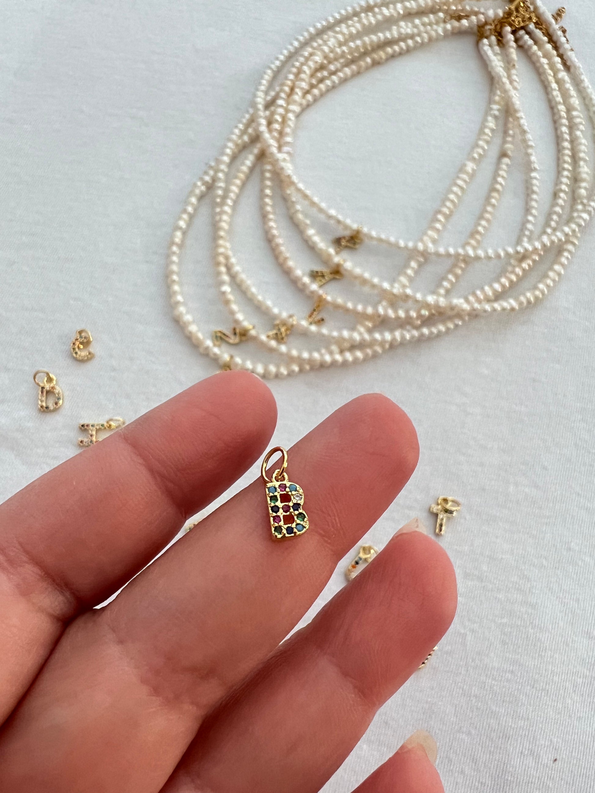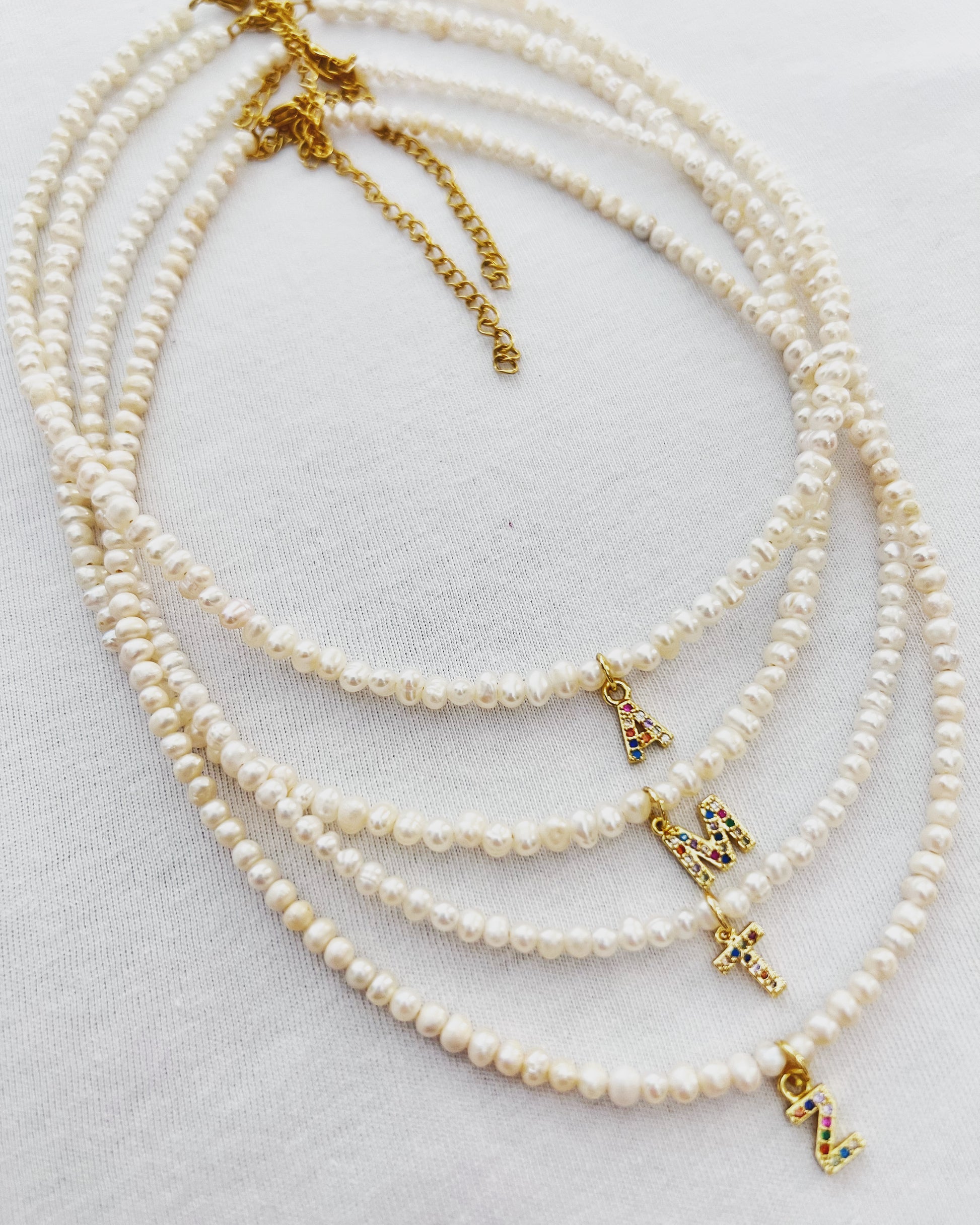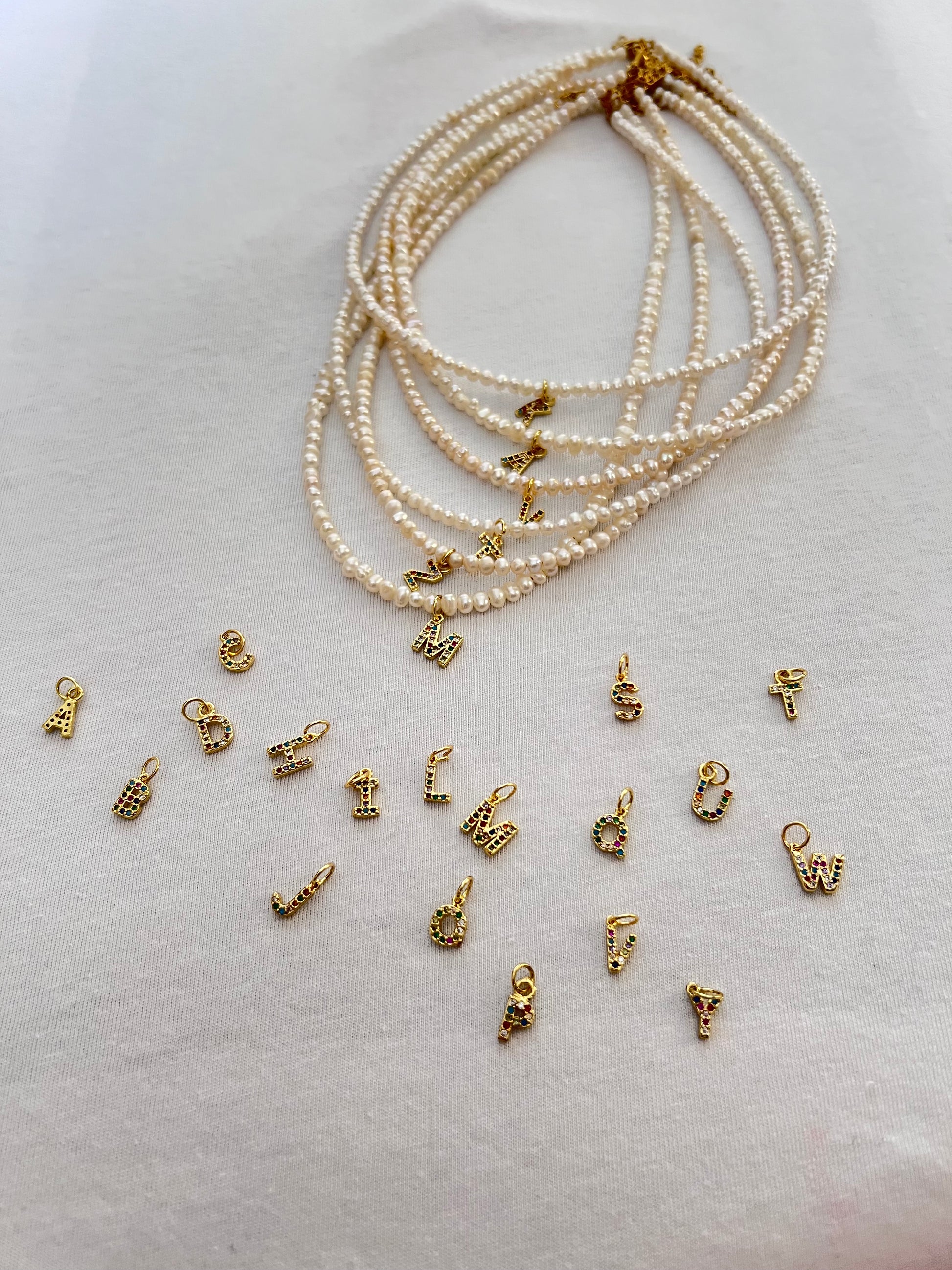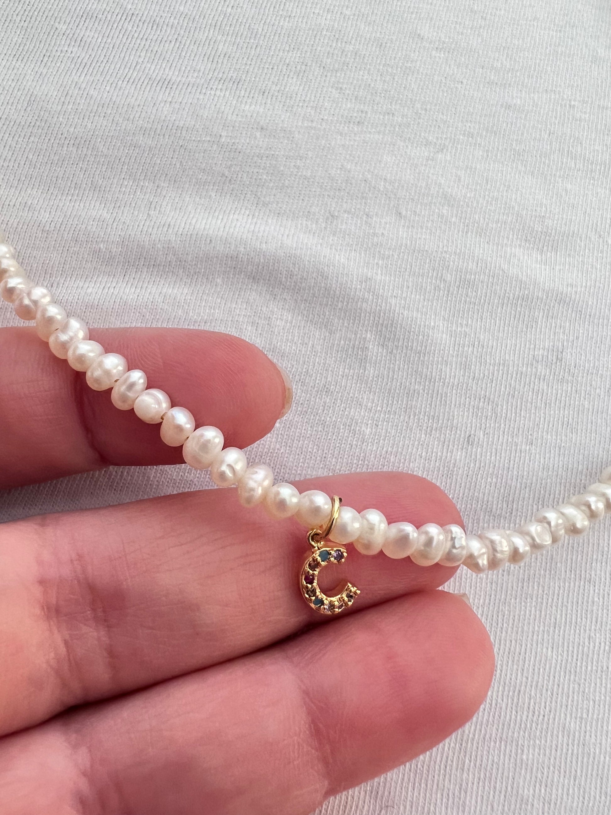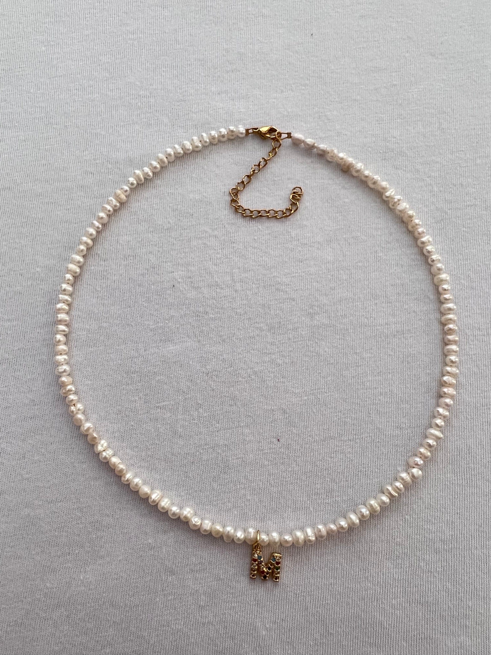 Κολιέ με λευκά μαργαριτάρια καλλιέργειας και μονόγραμμα ζιργκόν