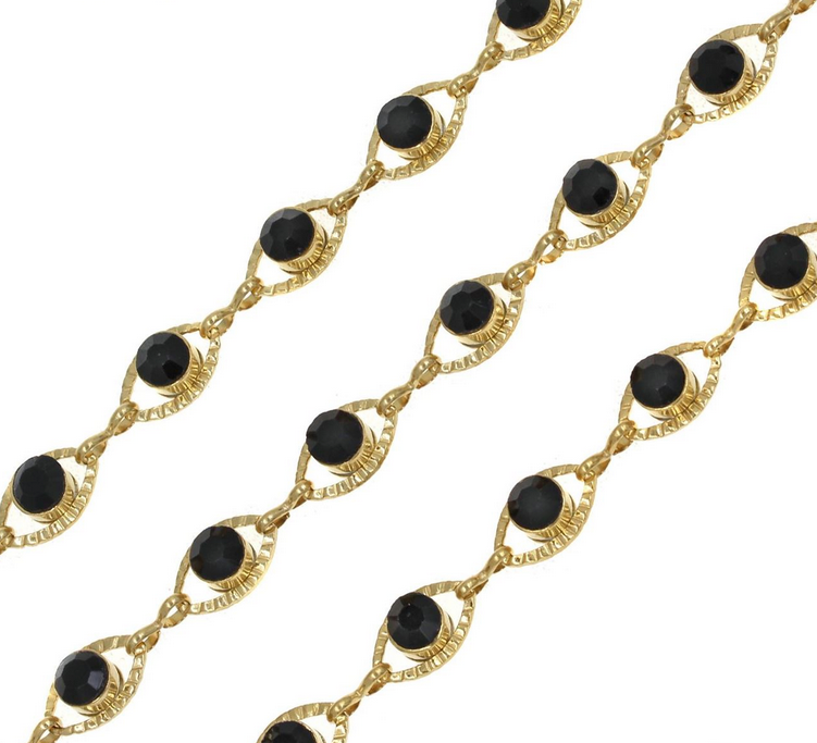 Αλυσίδα Ατσάλινη Μάτι Γραμμωτό 7mm με μαύρο στρας