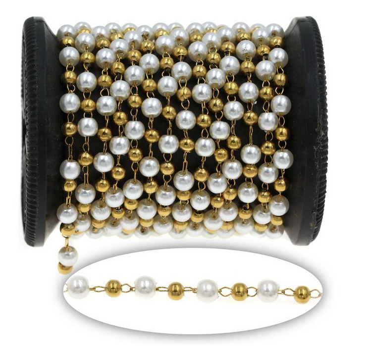 Αλυσίδα Ατσάλινη με 4mm πέρλα ακρυλική και μπίλια 3mm
