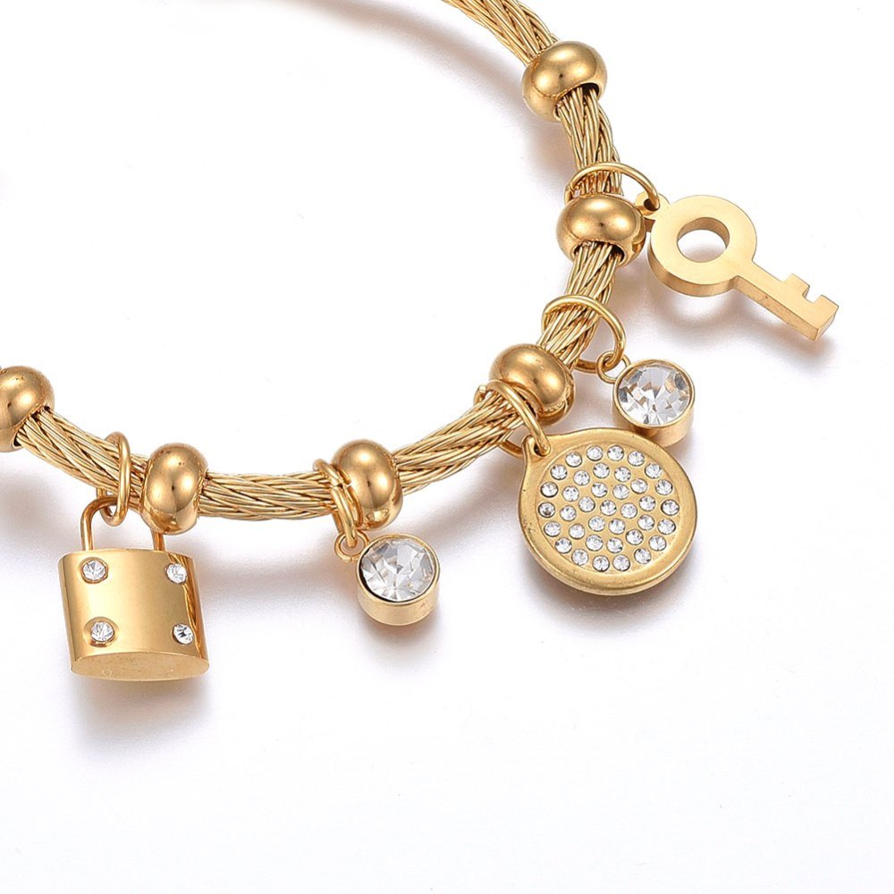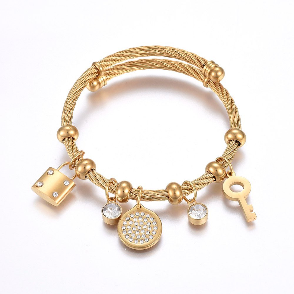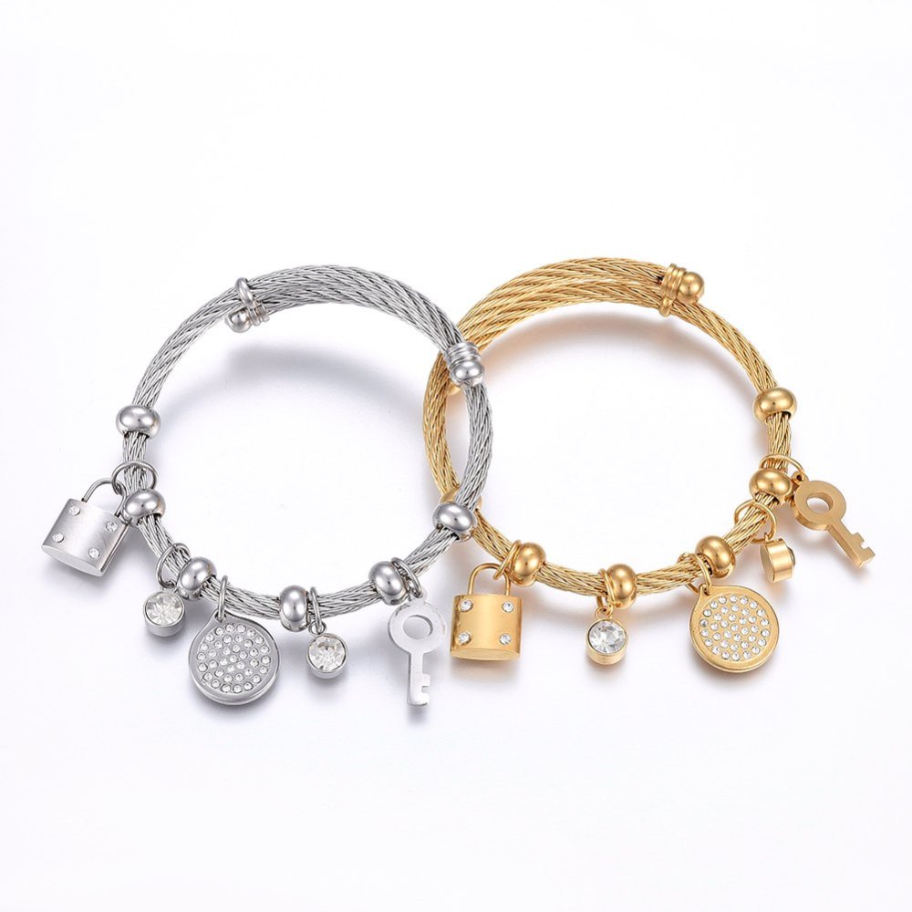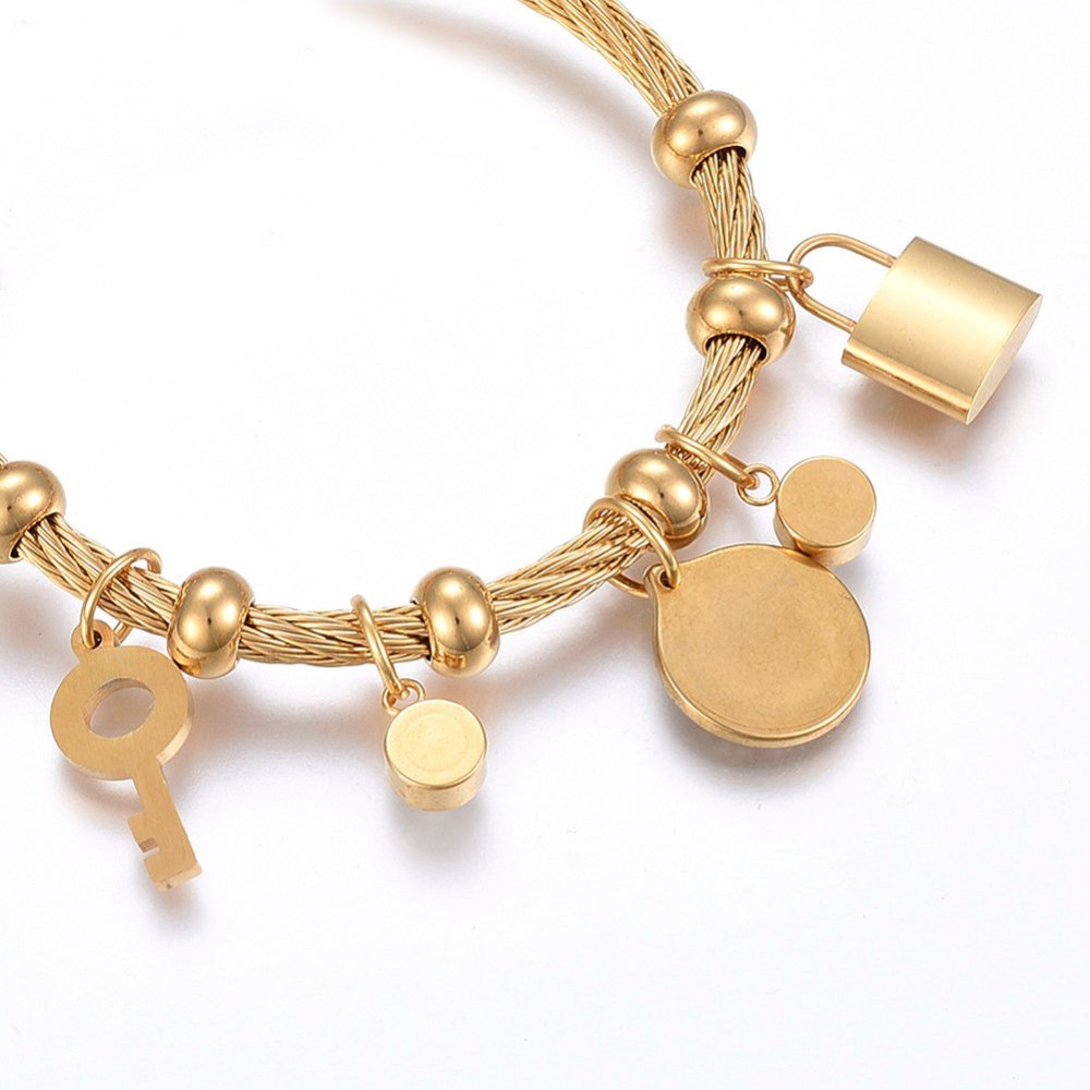 Βραχιόλι από ατσάλι που δεν μαυρίζει και μπορεί να φορεθεί σε όλες σας τις δραστηριότητες, με πολλά στοιχεία κρεμασμένα