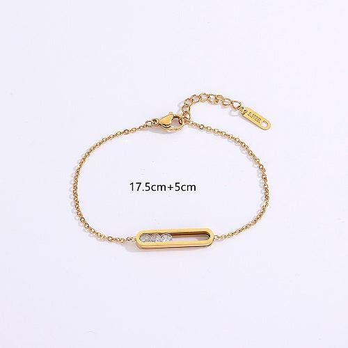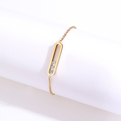Βραχιόλι από ατσάλι που δεν μαυρίζει με οβάλ μπάρα και ζιργκόν και μπορεί να φορεθεί σε όλες σας τις δραστηριότητες. Είναι 17,5 εκατοστά και διαθέτει επέκταση αλυσίδας.