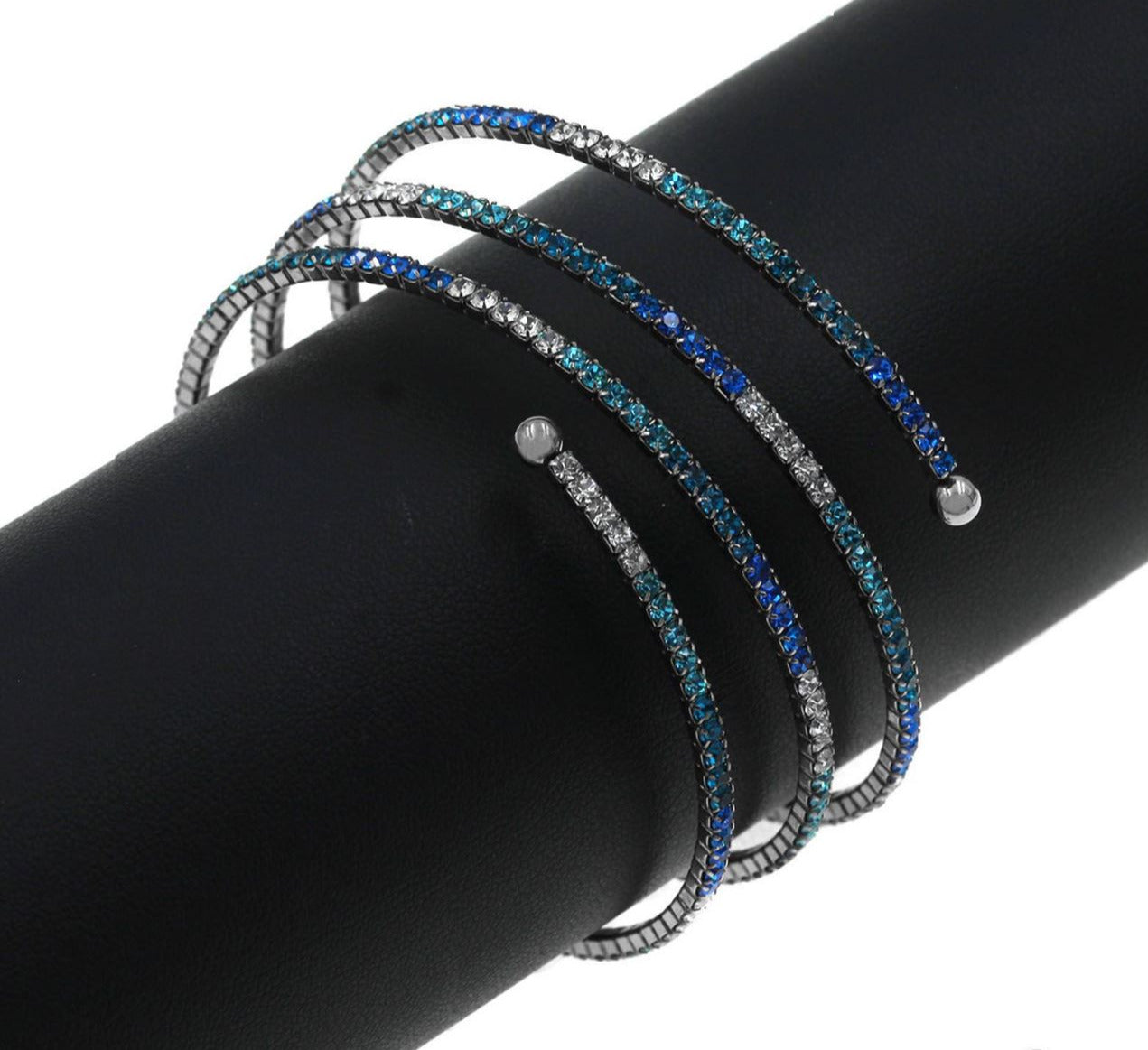 Ατσάλινο βραχιόλι με πολύχρωμα μπλε στρας