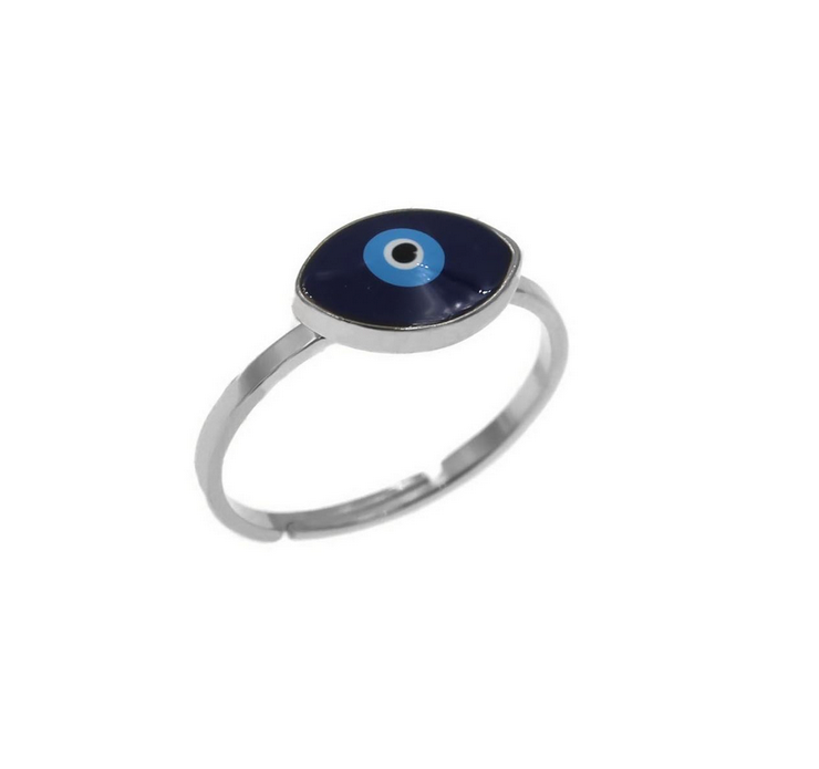 Ατσάλινο δαχτυλίδι με ματάκι ασημί και αυξομείωση που προσαρμόζεται στο δάχτυλο