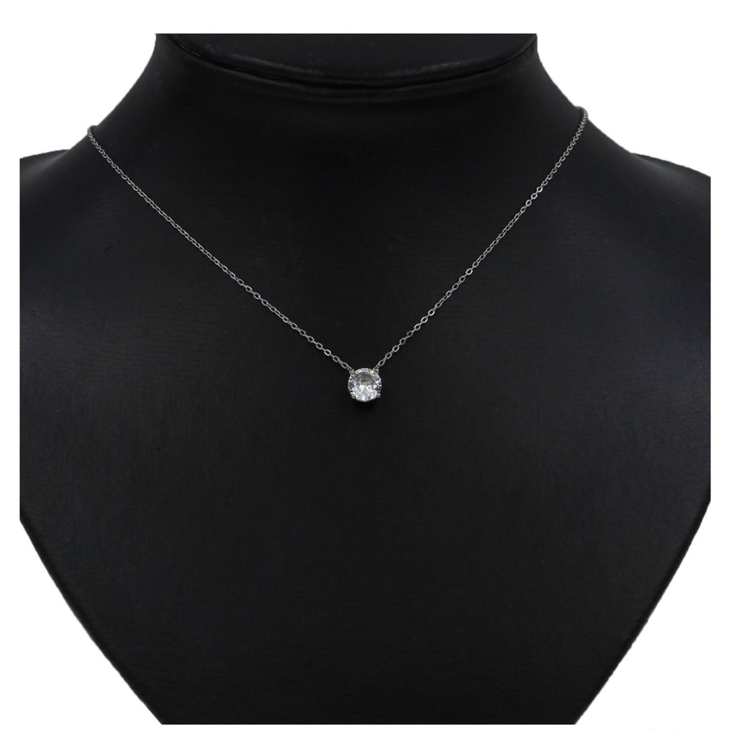 Ατσάλινο κολιέ με μονόπετρο ασημί