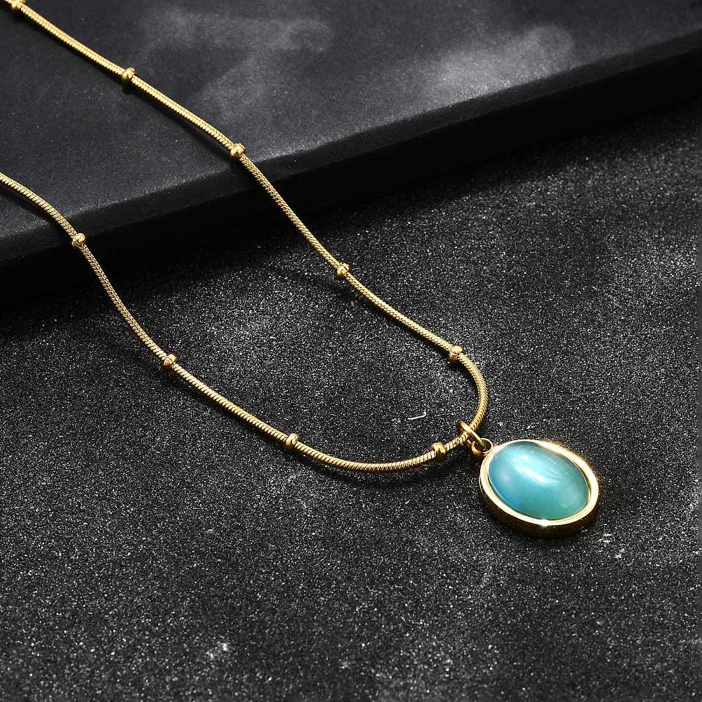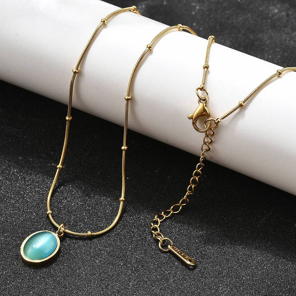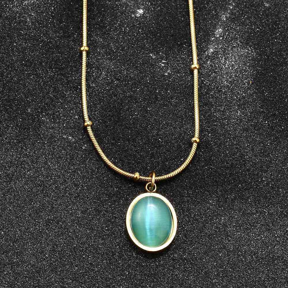 Ατσάλινο κολιέ με με πέτρα μάτι γάτας, με περίμετρο αλυσίδας 40 εκατοστά και επέκταση για να το φοράτε όσο κοντό ή μακρύ θέλετε