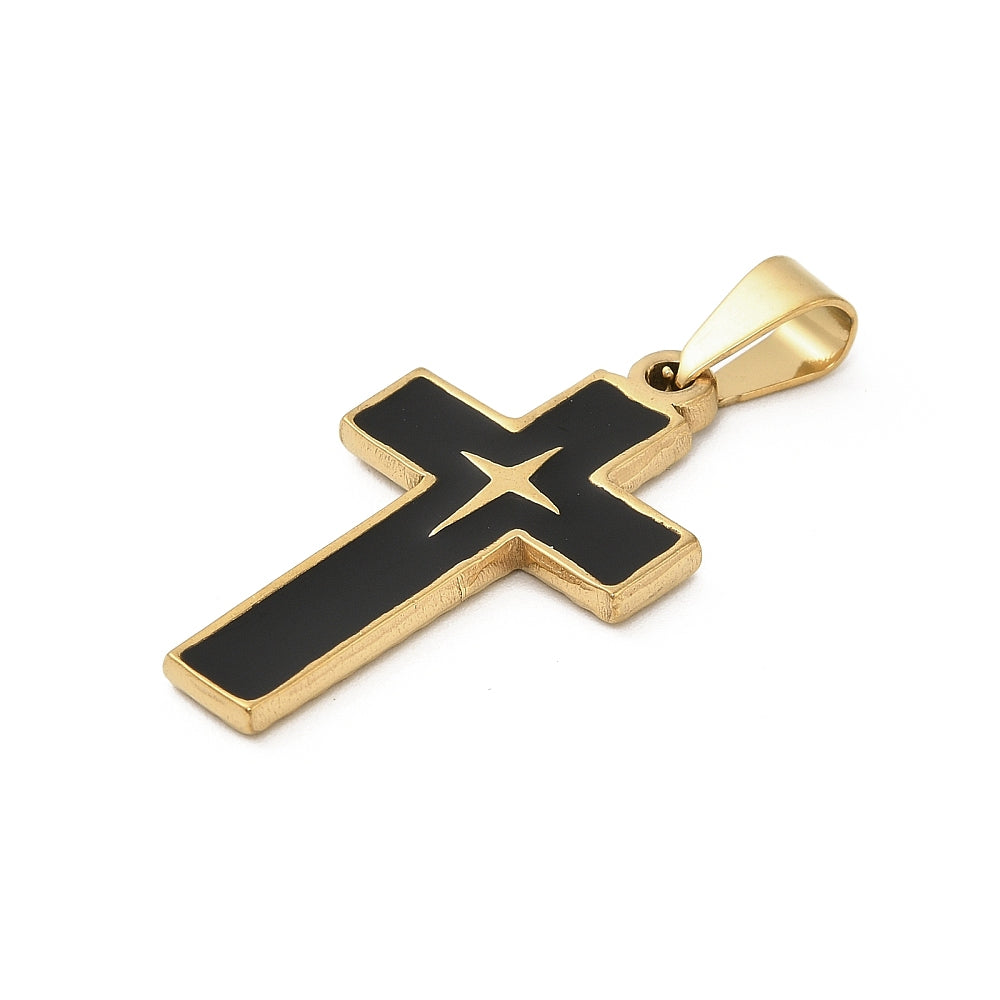 Ατσάλινο Στοιχείο χρυσός σταυρός με μαύρο σμάλτο 30mm