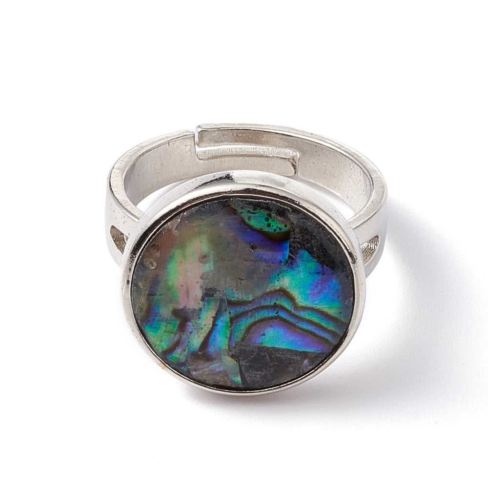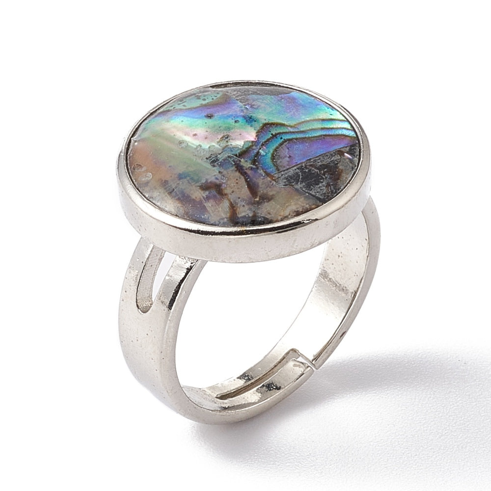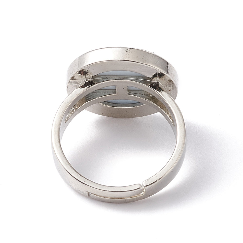 Ορειχάλκινο δαχτυλίδι με αυξομείωση και στρογγυλή φυσική πέτρα αμπαλόν.