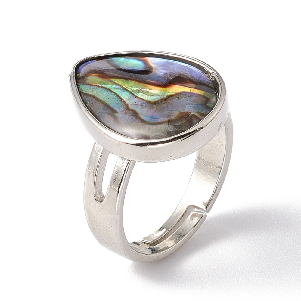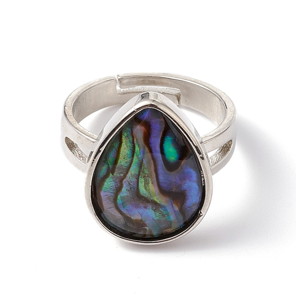 Ορειχάλκινο δαχτυλίδι με αυξομείωση και φυσική πέτρα αμπαλόν σε σχήμα σταγόνα.