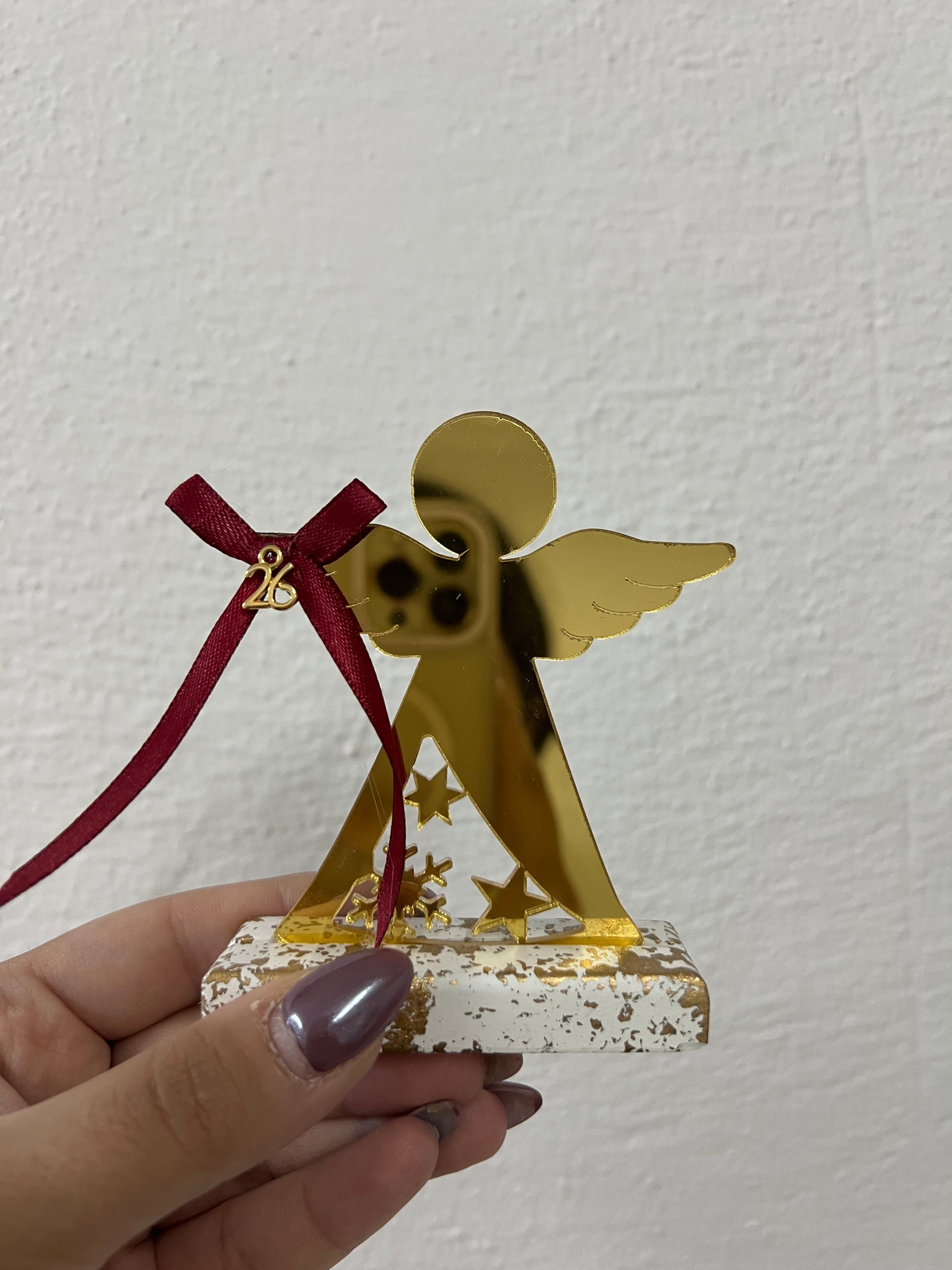 Αγγελάκι πλέξι γκλας με κορδέλα κόκκινη, ιδανικό για δώρο ή για διακόσμηση