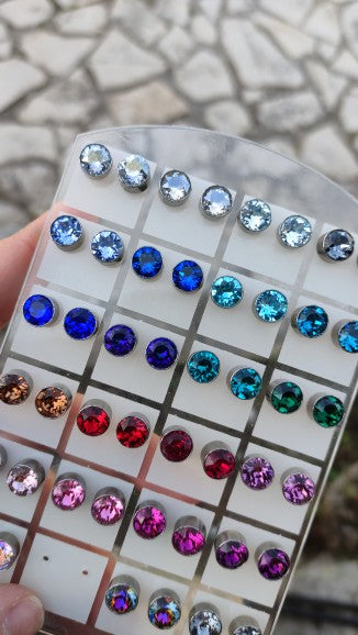 Καρφωτά σκουλαρίκια με αυθεντικά κρύσταλλα σε ατσάλινη βάση από υποαλλεργικό ατσάλι. Διάλεξε το δικό σου αγαπημένο χρώμα και κάνε τον μοναδικό σου συνδυασμό χειροποίητων κοσμημάτων.