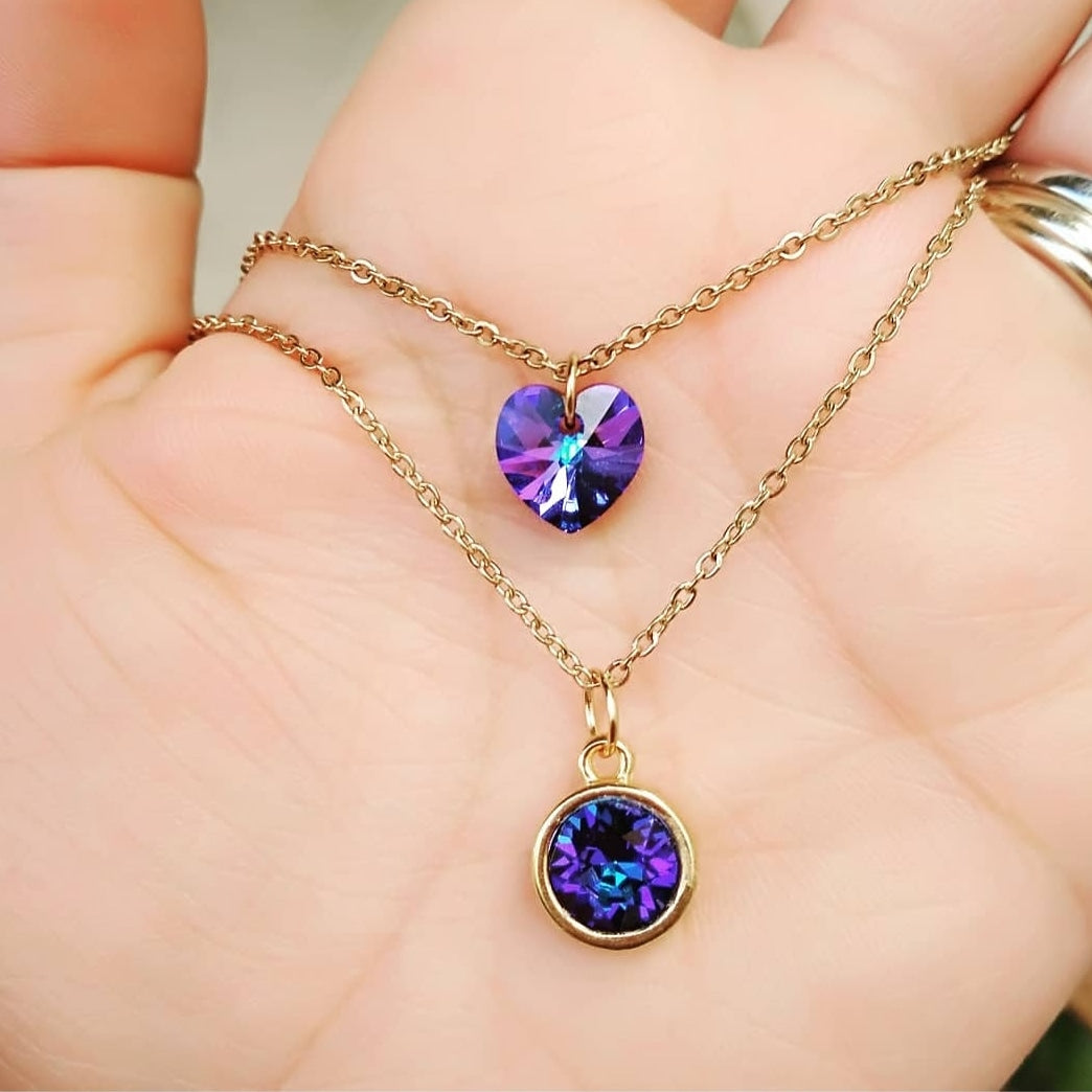 Δύο κολιέ με ίδιο χρωματισμό αυθεντικών κρυστάλλων σε διαφορετικό σχήμα. Μπορούν να φορεθούν είτε μαζί είτε ξεχωριστά για αυτό και πωλούνται ξεχωριστά εάν το επιθυμείτε. Επωφεληθείτε αγοράζοντας το σετ σε μειωμένη τιμή