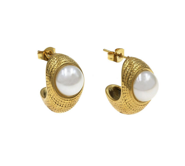 Εντυπωσιακά ατσάλινα σκουλαρίκια με πέρλα, από ανοξείδωτο ατσάλι που δε θα χάσουν το χρώμα τους ακόμα και μετά από έκθεση σε νερό ή άρωμα.