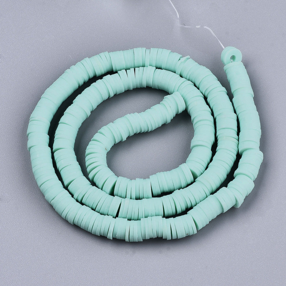 Χάντρες από πολυμερικό πηλό σε ανοιχτό βεραμάν χρώμα, ίσως η πρώτη επιλογή για ελαστικά βραχιόλια φιλίας