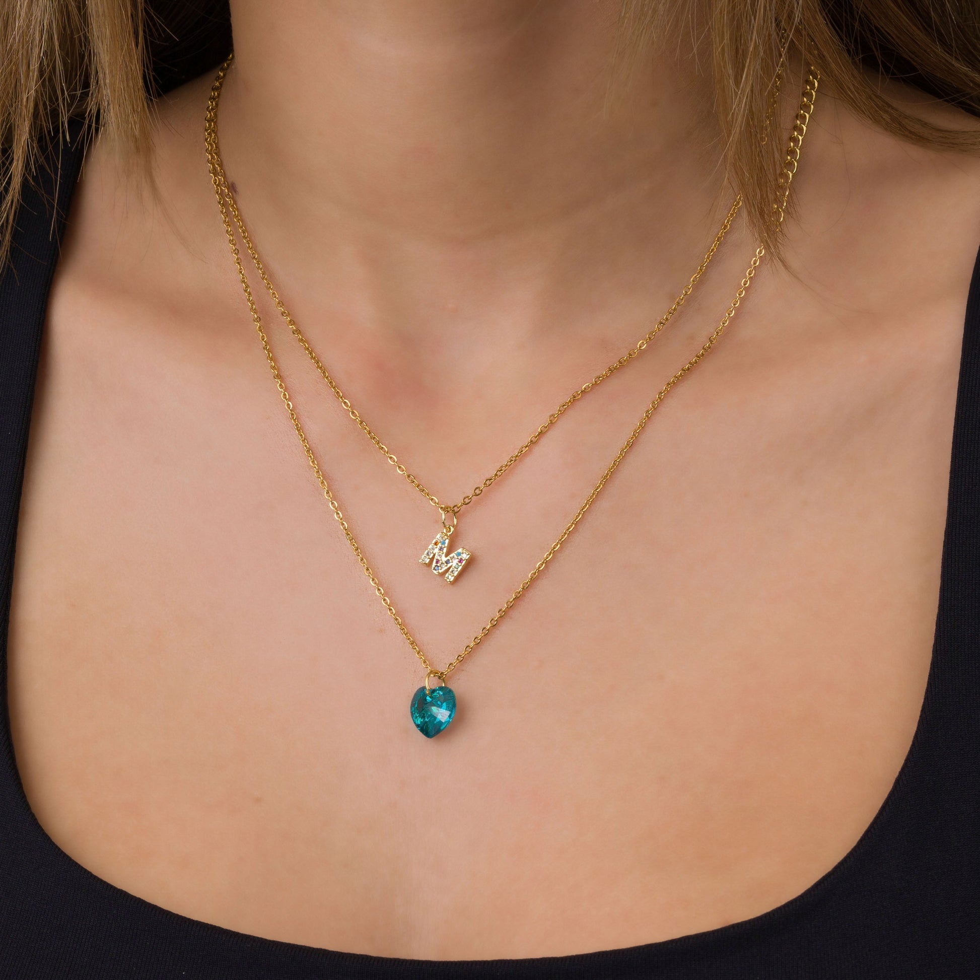 Σετ με καρδούλα κρύσταλλο και μονόγραμμα - Τυρκουάζ